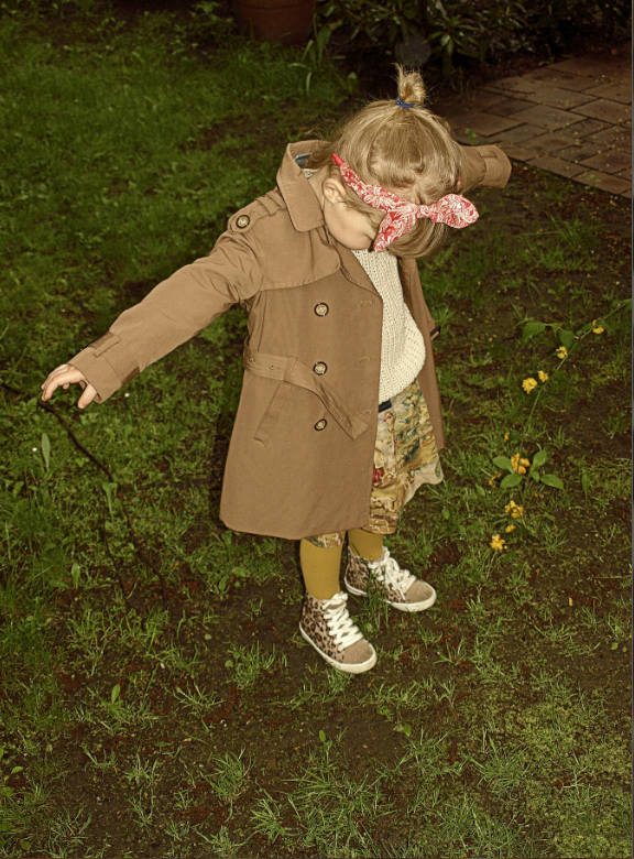 Matylda ma kurtkę i sukienkę -h&m, sweter- f&f różdżkę z czereśniowej manufaktury